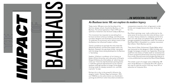 Week 6: Mr. Vinod commented that while the arrow concept was interesting and could potentially work if executed correctly, but the left spread of the first layout design had a lot of "negative space". He encouraged me to experiment more in order to find a layout that can best utilize the concept of the arrow.